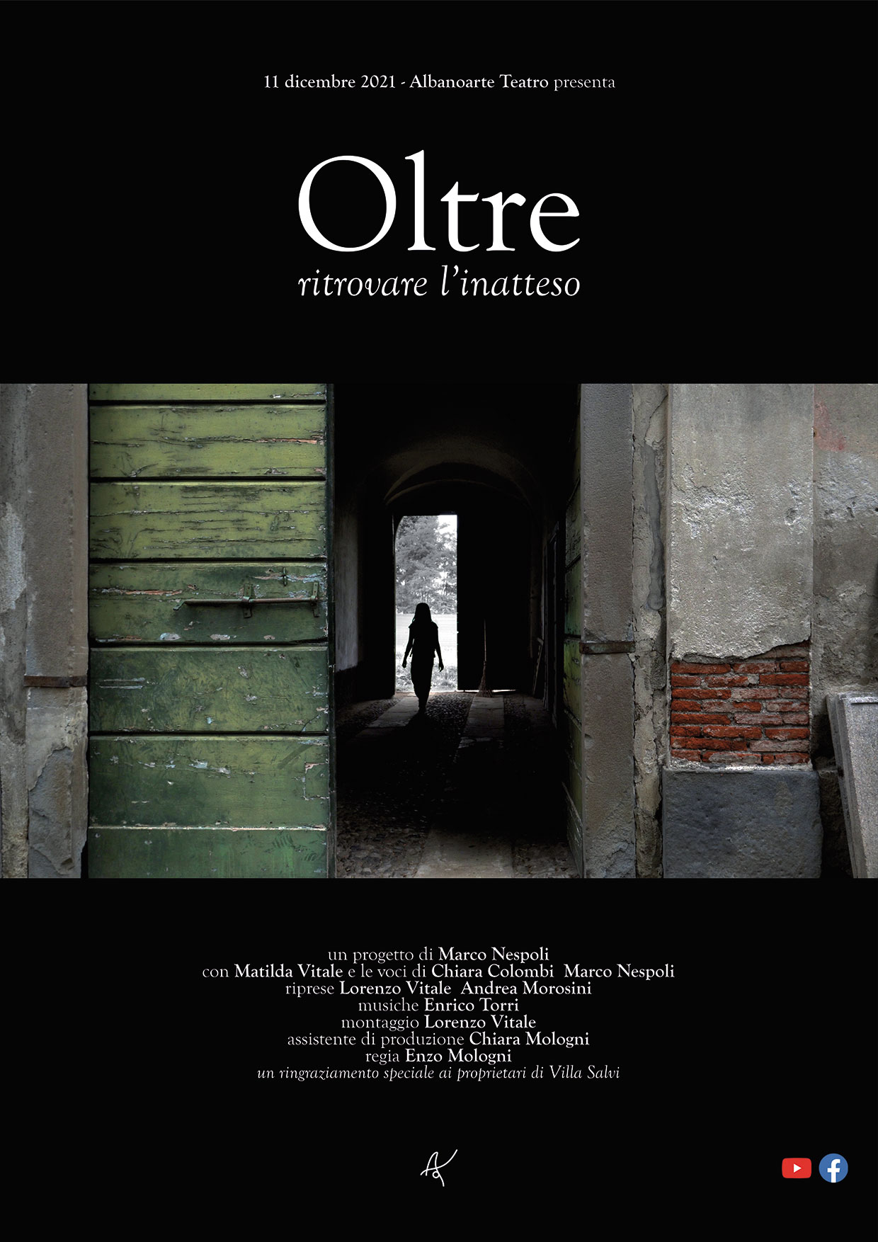 Il cortometraggio “Oltre, ritrovare l’inatteso” ci porta nel contemporaneo, nella vita di una bambina che svogliatamente si sta recando a Scuola. Ma quella mattina qualcosa è differente dalla solita routine e Matilda se ne accorge subito… c’è il portone aperto in una villa antica che lei ha sempre visto chiusa, di cui nel tempo ha fantasticato storie da fiaba…
