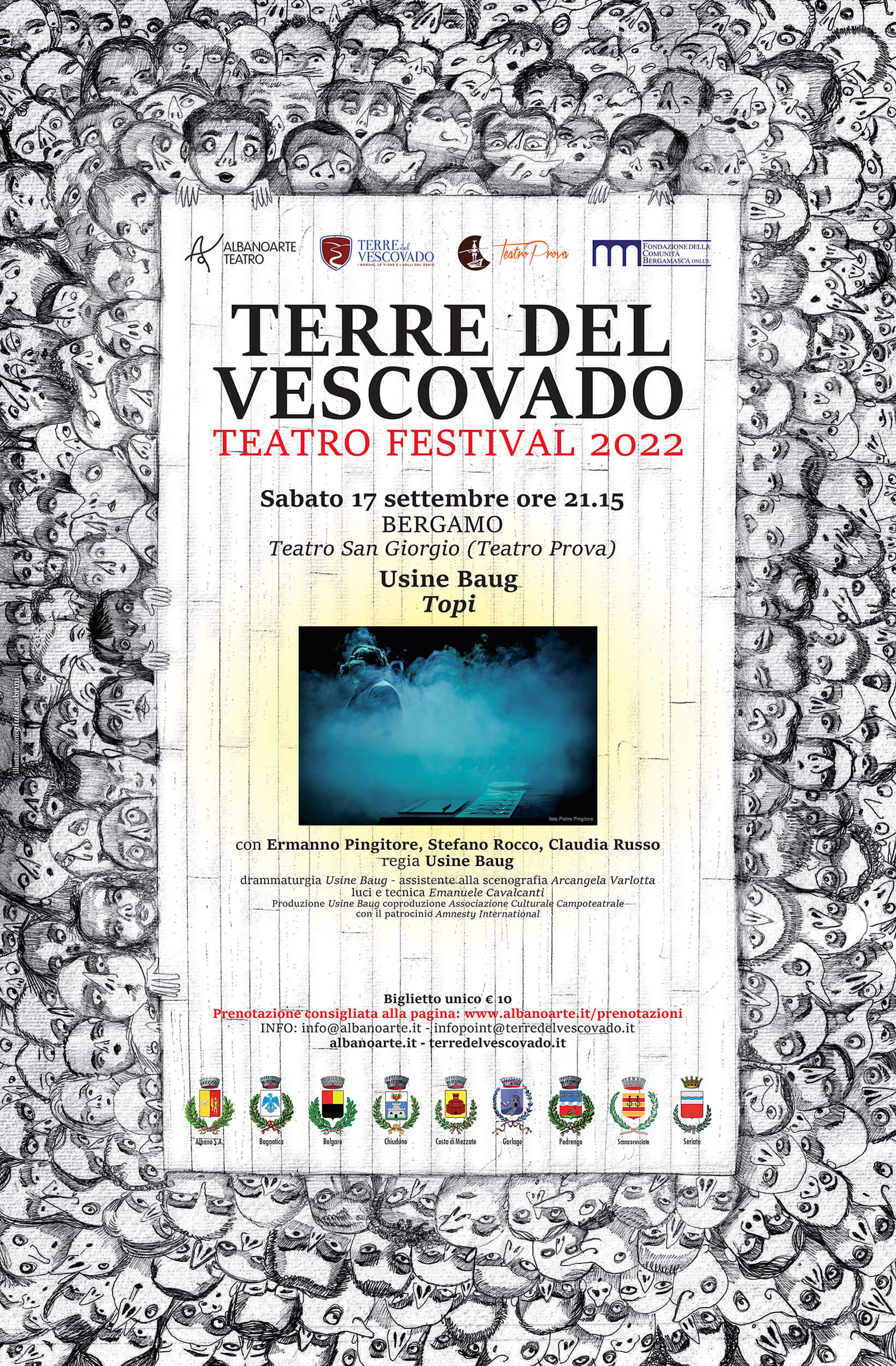 In “Topi” il fittizio ed il reale si incontrano per raccontare di nuovo il G8 di Genova cercando di offrire una riflessione più ampia. Tramite testimonianze reali, personaggi ideati, ricostruzioni sonore e trasposizione scenica, molte prospettive rendono la complessità di quei giorni aprendo crepe nell’immaginario collettivo.