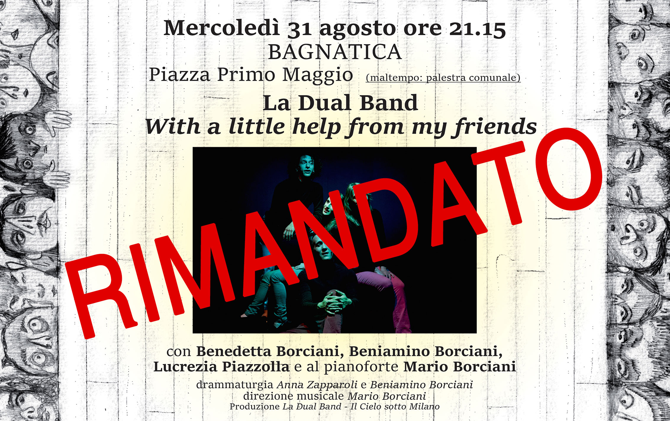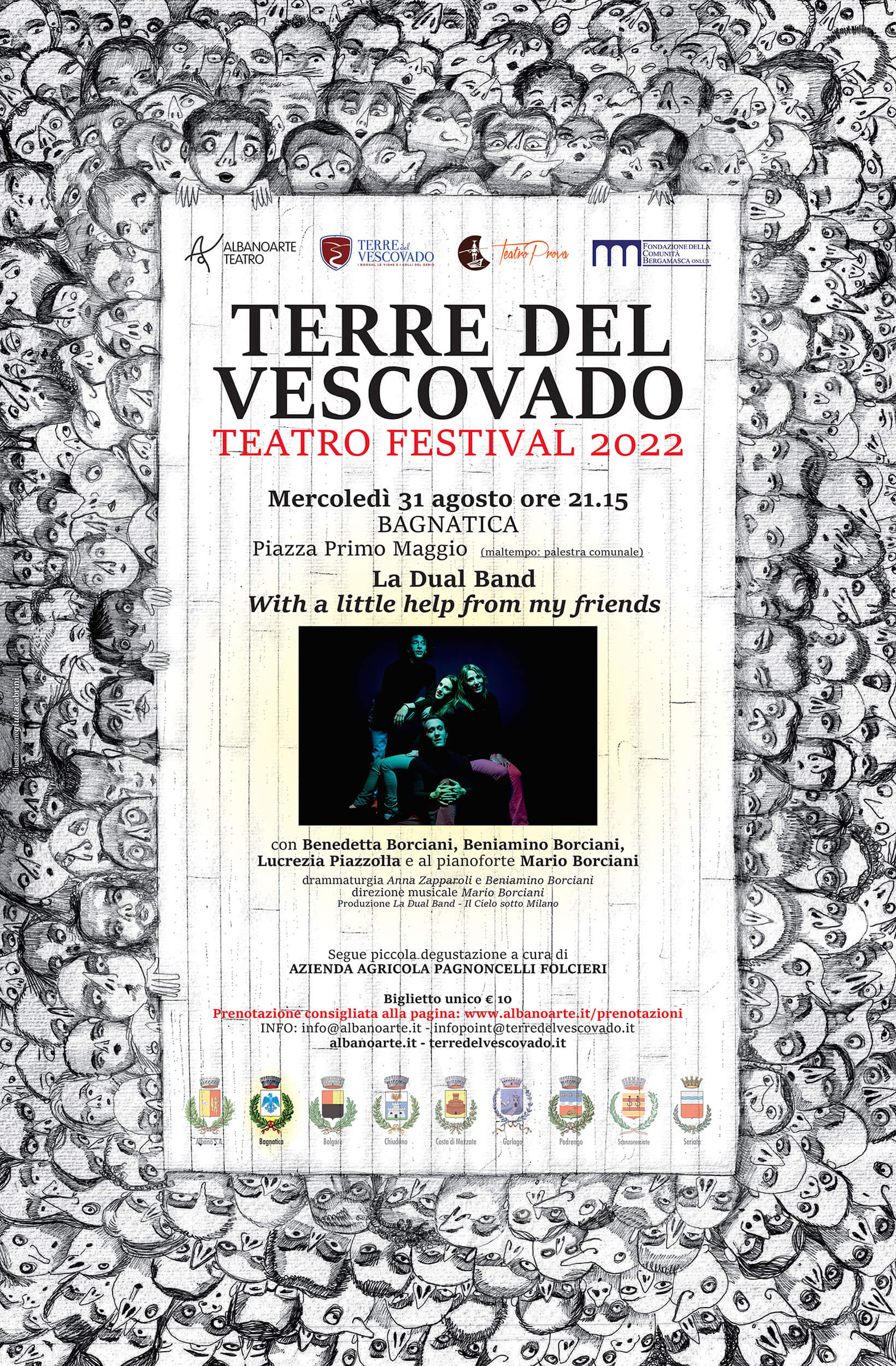Una storia mai accaduta prima e mai più ripetuta: quella dei Beatles. Questo spettacolo è un affascinante concerto in canto che ripercorre la parabola artistica e di vita dei Fab Four. Dall’incontro fra John, Paul, George e Ringo alla gavetta nei piccoli club di Amburgo, dal Cavern Club di Liverpool fino ai tour mondiali davanti a folle sterminate, vi racconteremo quel periodo magico – gli anni ’60 – in cui da un’Inghilterra uscita distrutta dalla guerra ma affamata di musica, colori e rinascita, spuntarono quattro ragazzi che cambiarono, per sempre, le regole del gioco. Da sempre appassionata al mondo dei Beatles, la Dual Band offre in questa serata-racconto 17 canzoni, fra grandi classici e perle meno conosciute, fino ad arrivare ad alcune gemme solistiche di Paul, John e George; il tutto raccontato in musica e parole, come è cifra stilistica della band, da un pianoforte e da un quartetto vocale che a sua volta fa tutti gli strumenti.