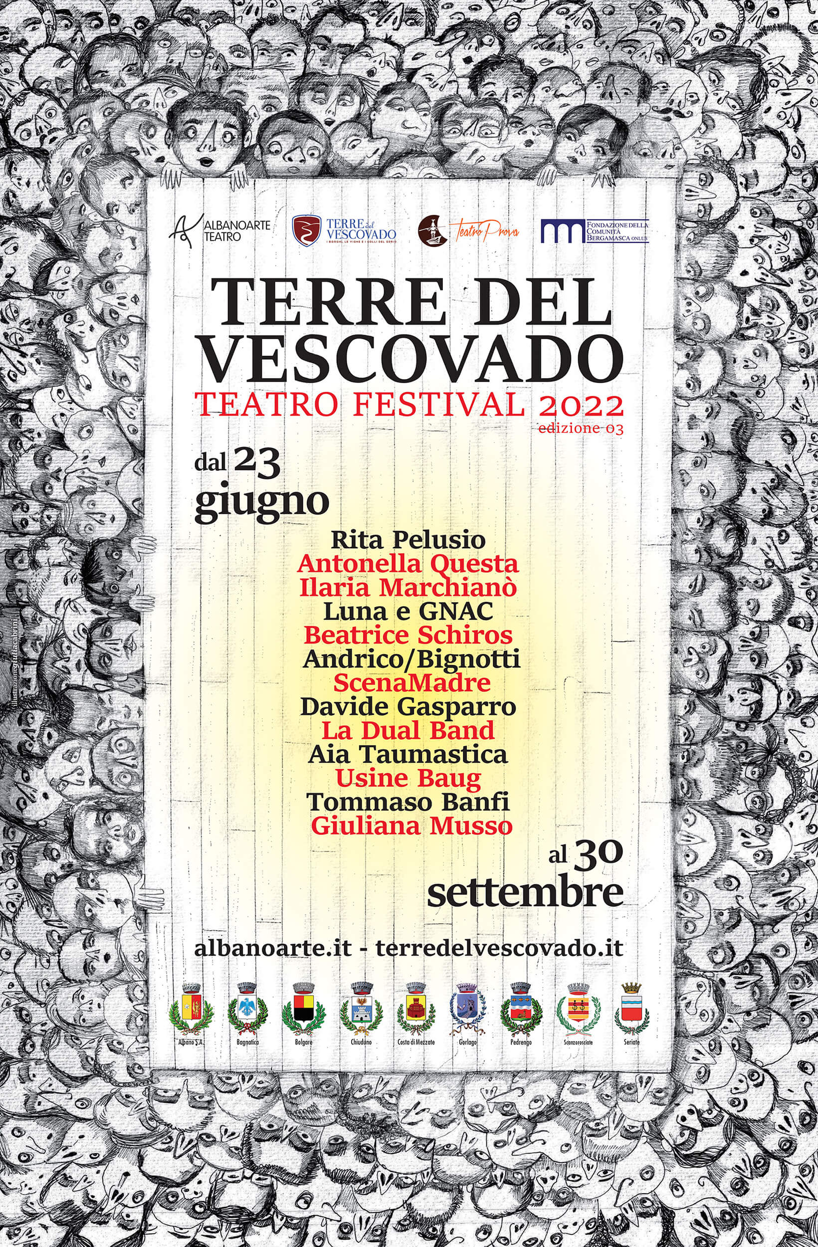 Il sodalizio tra Albanoarte Teatro, Terre del Vescovado cui si aggiunge il Teatro Prova, propone un Festival all’insegna della qualità da vivere necessariamente con passione, curiosità e sensibilità, tutti insieme a ridosso di un palco pieno di meraviglia.